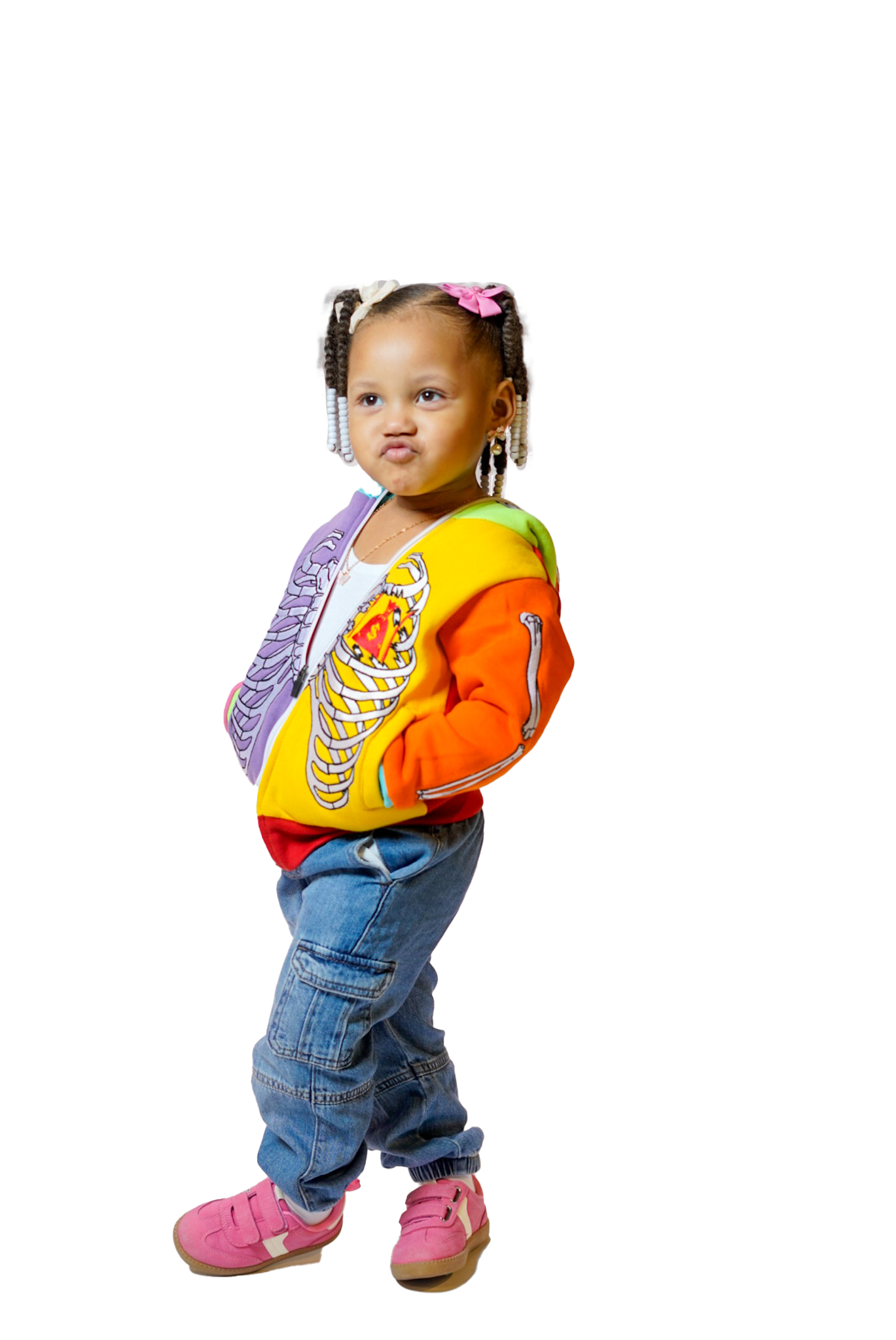 Watch your little ones light up in this vibrant rainbow color-blocked hoodie that's got them absolutely obsessed. Featuring bold skeleton graphics with eye-catching color sections, it's the kind of piece kids actually want to wear. The double-layered construction keeps wind and weather at bay, making it perfect for outdoor adventures and everyday wear. Comfortable, durable, and undeniably cool—this is the hoodie that'll have them asking to wear it every single day.